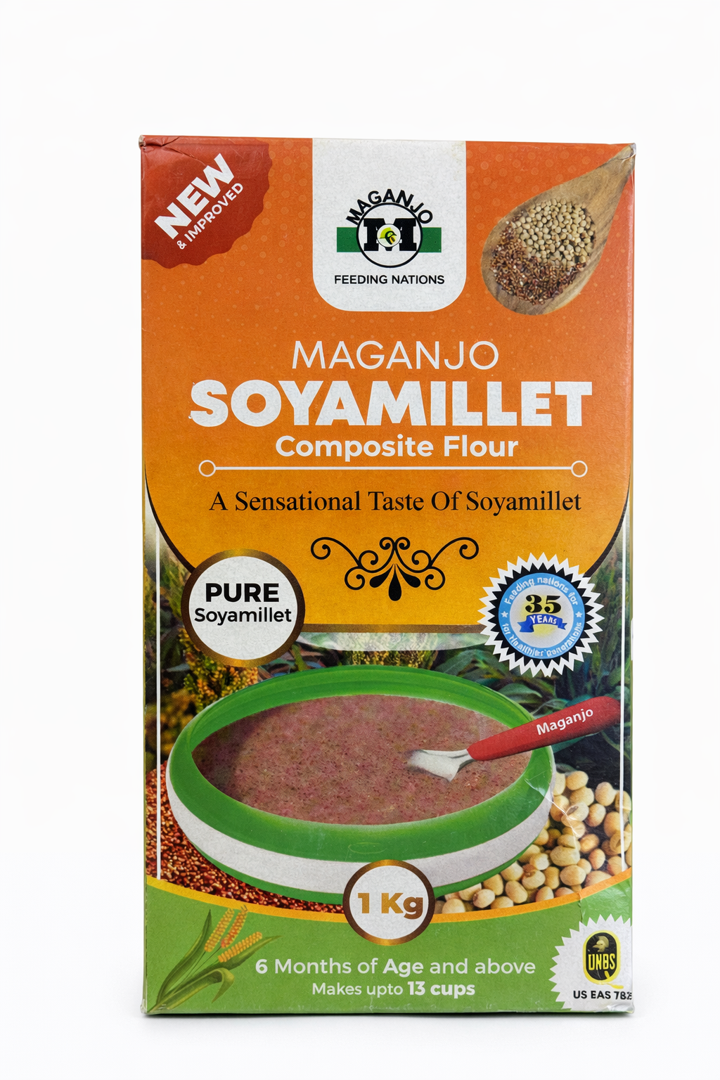 Maganjo Soyamillet Flour is a wholesome blend of millet and soybeans, carefully milled to provide a rich source of protein, fiber, and energy.